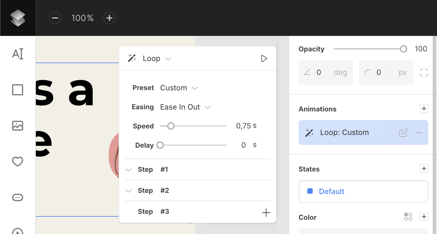 For Loop animations, the Custom preset allows multiple steps (2 by default). You can add as many steps as needed to create unique looping effects.